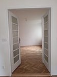Podlahové krytiny: dlažba, nově zbroušené parkety, část podlahy v zóně vaření PVC, koberec celoplošný v menší ložnici;