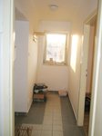 Podlahové krytiny: v pokoji je plovoucí podlaha, v předsíni dlažba;