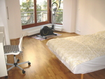 Podlahové krytiny: plovoucí dřevěné podlahy, dlažba.