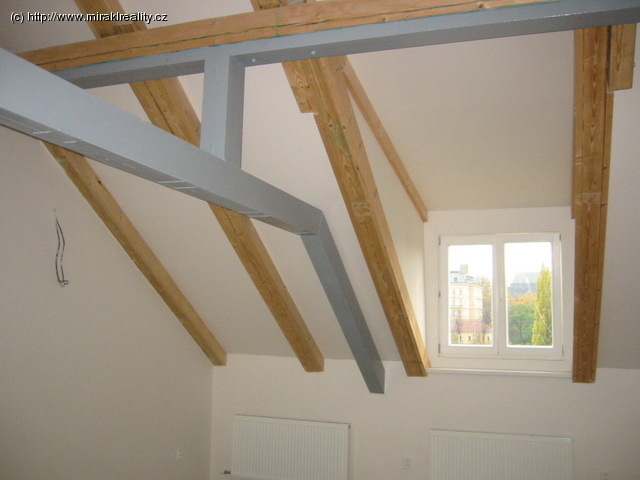 Vybavení: plovoucí podlahy, kuch. linka, el. dvojvařič, velké atelierové okno v hlavní místnosti, přiznané trámy, vysoké stropy, možnost vestavby úložných prostor, výhled na Hrad;