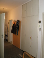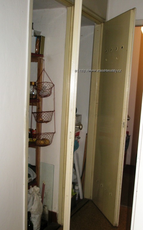 Vybavení: byt je nezařízený nábytkem, jen kuchyňská linka IKEA, elektrický sporák (380), má dostatek úložných prostor. Vestavěná skříň v hale, 2 x spižírny, úložné niky v hale; v koupelně vana, původně byl bidet-předěláno na místo na pračku. WC s umyvadlem zvlášť, původní vykládaná dlažba, nádherné dubové parkety v celém bytě vč. haly;