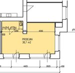 Velikost obchodu: 38,5 m2, JV, počet výkladů 3, propojené původně dva menší obchody, nyní jeden celek, 2 možné vstupy ponechány; jednotlivé výměry 17+21,5 m2;