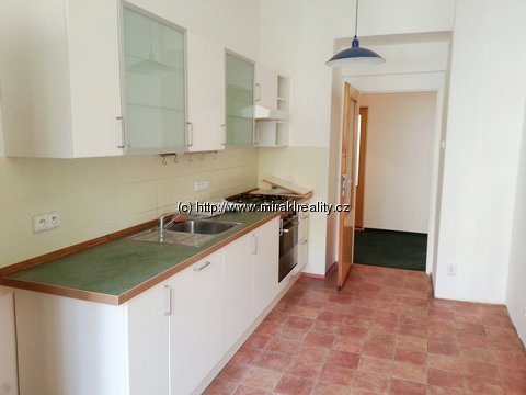 Vybavení: kuchyňská linka IKEA, myčka, plynová varná deska, elektrická trouba, v koupelně vana, přípojka na pračku v technické místnosti s oknem, byt je bez dalšího nábytku, jen skříň v ložnici, bezpečnostní vstupní dveře, spižírna;