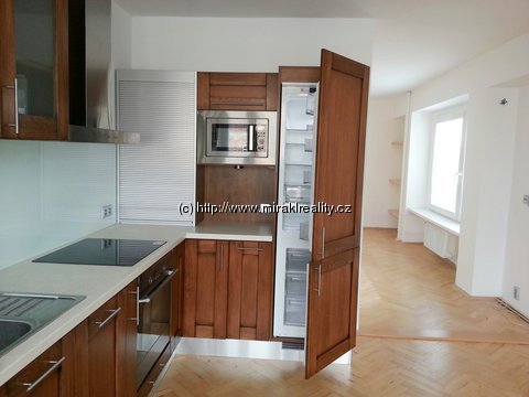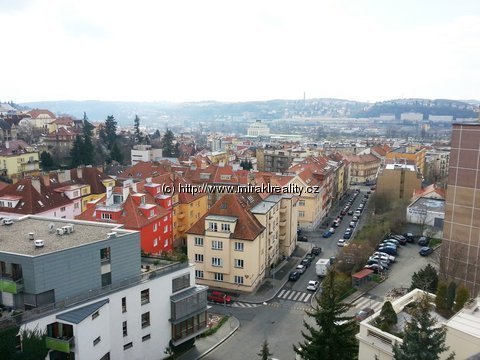Zvláštnosti: kvalitní a prostorný byt po kompletní rekonstrukci před 5 lety, pečlivě udržovaný, s mimořádným výhledem na Prahu; vhodný pro rodinu nebo pár, nekuřácký byt, bez domácích zvířat, prostorný SKLEP na kola; stávající rodina nájemce přdává byt koncem dubna.