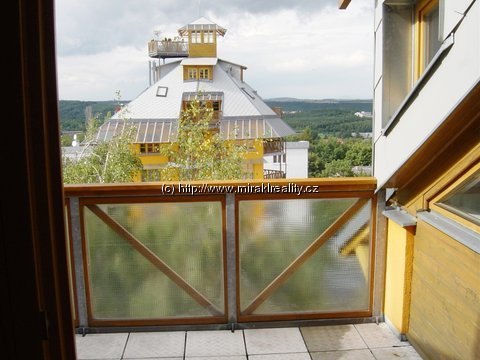 Byt se nachází ve 3. patře novostavby se dvěma balkony a výhledy do zeleně a okolí.
