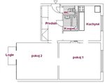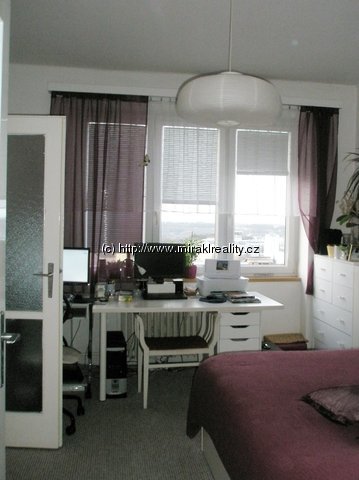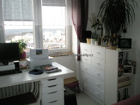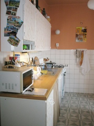 Vybavení: nezařízený byt nábytkem, kuch. linka, kombinovaný sporák, vestavné skříně v předsíni, skříň a komoda v ložnici, pračka v koupelně, knihovnička;