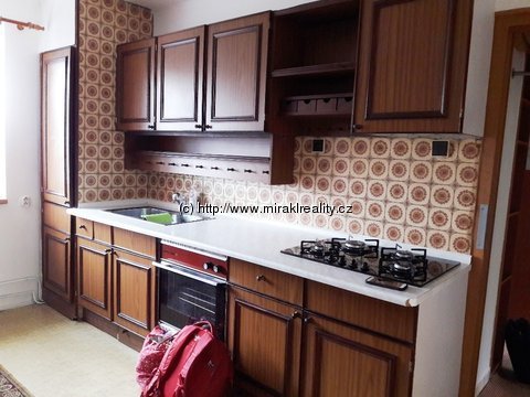 Vybavení: částečně zařízený, kompletní kuchyně, plynová varná deska, el. trouba, ve zděné zrekonstruované koupelně, vana, WC, pračka, vestavné skříně, dvě lůžka s úložným prostorem, jídelní stůl + židle, vitrína - nemusí zůstat;