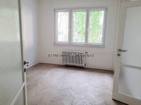 Vybavení: byt je nezařízený nábytkem, vybavený jen: vestavné skříně v předsíni, nová kuchyňská linka, varná plynová deska, el. trouba, přípojka a místo na pračku, v koupelně po rekonstrukci vana, zvlášť WC, k dispozici sklep; výhled do ulice z kuchyně a ložnice, z OP do pěstěného parku se západním sluncem;