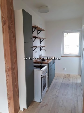Vybavení: kuchyňská linka IKEA, el. sporák s troubou, chladnička, dřez; v koupelně WC Geberit, nový vyzděný sprchovací kout se skleněnou zástěnou a luxfery, automatická pračka, nové rozvody sítí, zbroušené a impregnované dřevěné podlahy, dřevěná eurookna s ochranou proti hmyzu, nové rozvody ústředního topení s kondenzačním plynovým kotlem.