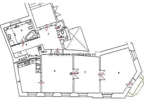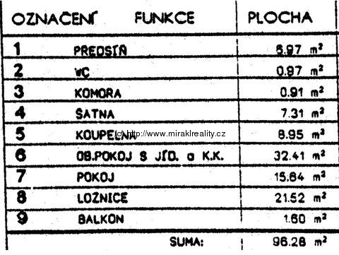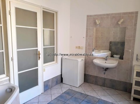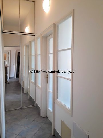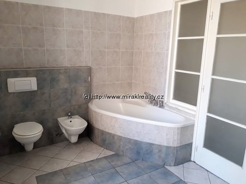 Vybavení: byt je po kompletní rekonstrukci před 11 lety, je nezařízený nábytkem, vybaven jen kuchyňskou linkou se všemi spotřebiči (myčka, plynový sporák, digestoř, lednice s mrazákem), v prostorné koupelně s oknem je rohová vana, bidet, WC, pračka, vestavěné skříně se šatnou v hale, úložná komora, další 2. samostatné WC v hale, domovní telefon, vodoměr;