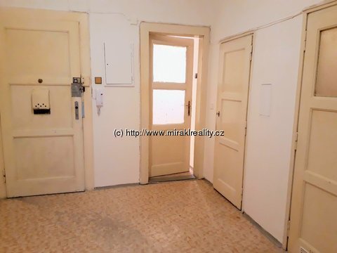 Vybavení: nezařízený byt, bez velké kuchyňské linky- instalován nový kombinovaný sporák a modul dřez-skříňka; v koupelně vana, toaleta samostatná, spižírna –úložná komora s policemi.Domovní telefon;