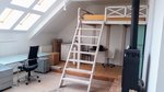 Velikost a stav atelieru: 1+kk., kolaudováno jako "atelier", lze však vyuĹľĂvat i k pĹ™echodnĂ©mu pĹ™espávánĂ, nebo bydlenĂ. VĂ˝mÄ›ra 40 m2, sestává z pĹ™edsĂnÄ›, koupelny se sprchovacĂm koutem a WC, hlavnĂ mĂstnosti do „L“ s vestavÄ›nĂ˝m patrem 200 x 200 cm; VybavenĂ: ÄŤajová kuchynÄ› s dvouplotĂ˝nkovĂ˝m vaĹ™iÄŤem, stĹ™ešnĂ okna Velux, stĹŻl, Ĺľidle; stáložárná kamna lze pouĹľĂvat po vyvloĹľkovánĂ komĂnu, nynĂ bohuĹľel ne;