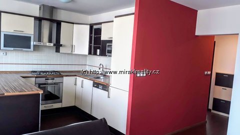 Zvláštnosti: slunný byt (J,Z hlavní místnost, SV ložnice) s výhledem, vybavený všemi potřebnými spotřebiči a úložnými prostory, příjemná lokalita;