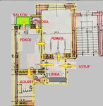 Velikost bytu: 2+k.k., 46 m2; 2 pokoje á 20 a 14 m2, komora 1,2 m2, balkon 0,6 m2, koupelna, WC samostatné, kuchyňská linka v předsíni 7 m2; původní dispozice bytu 1+1; neprůchozí pokoje;